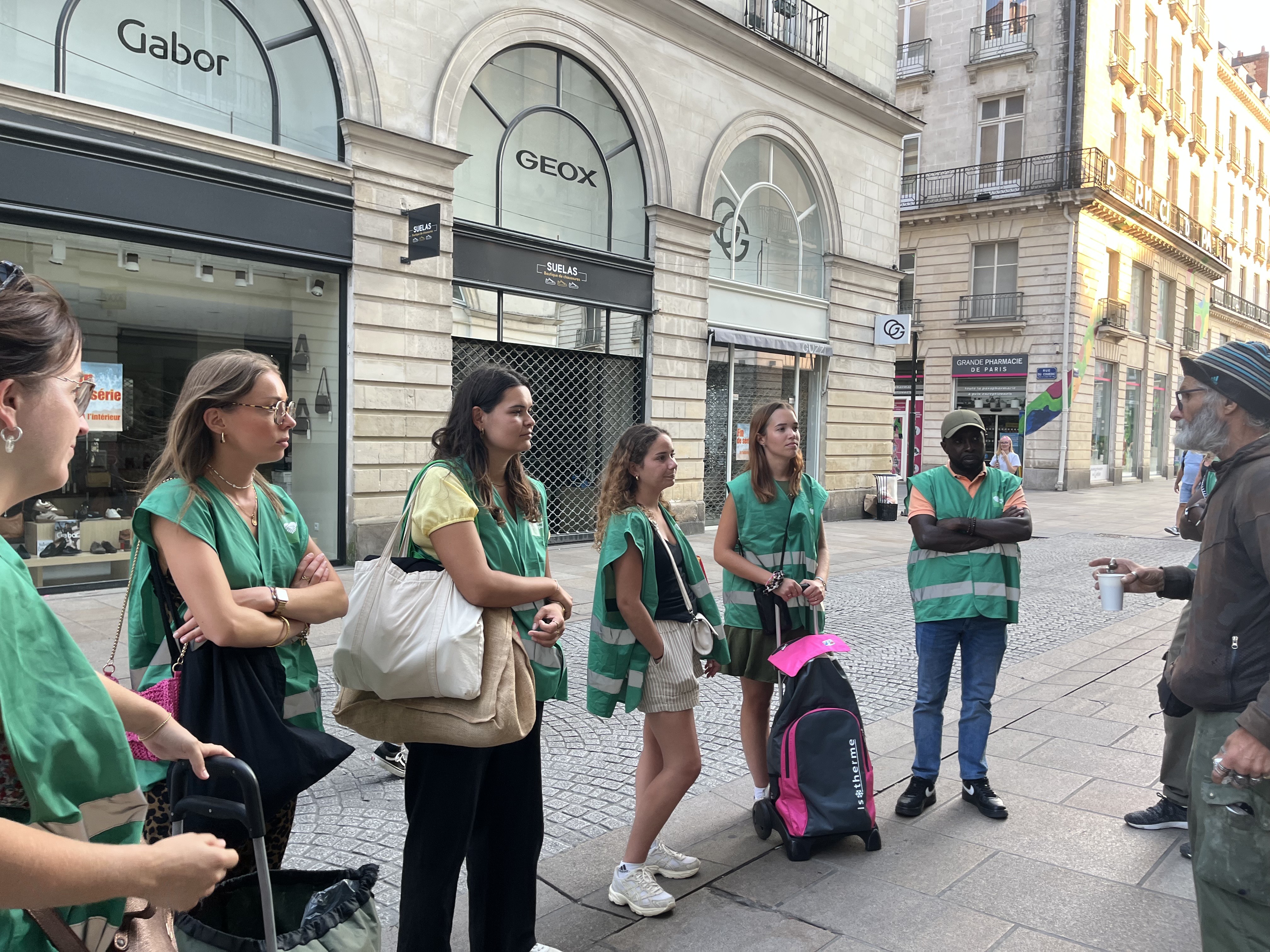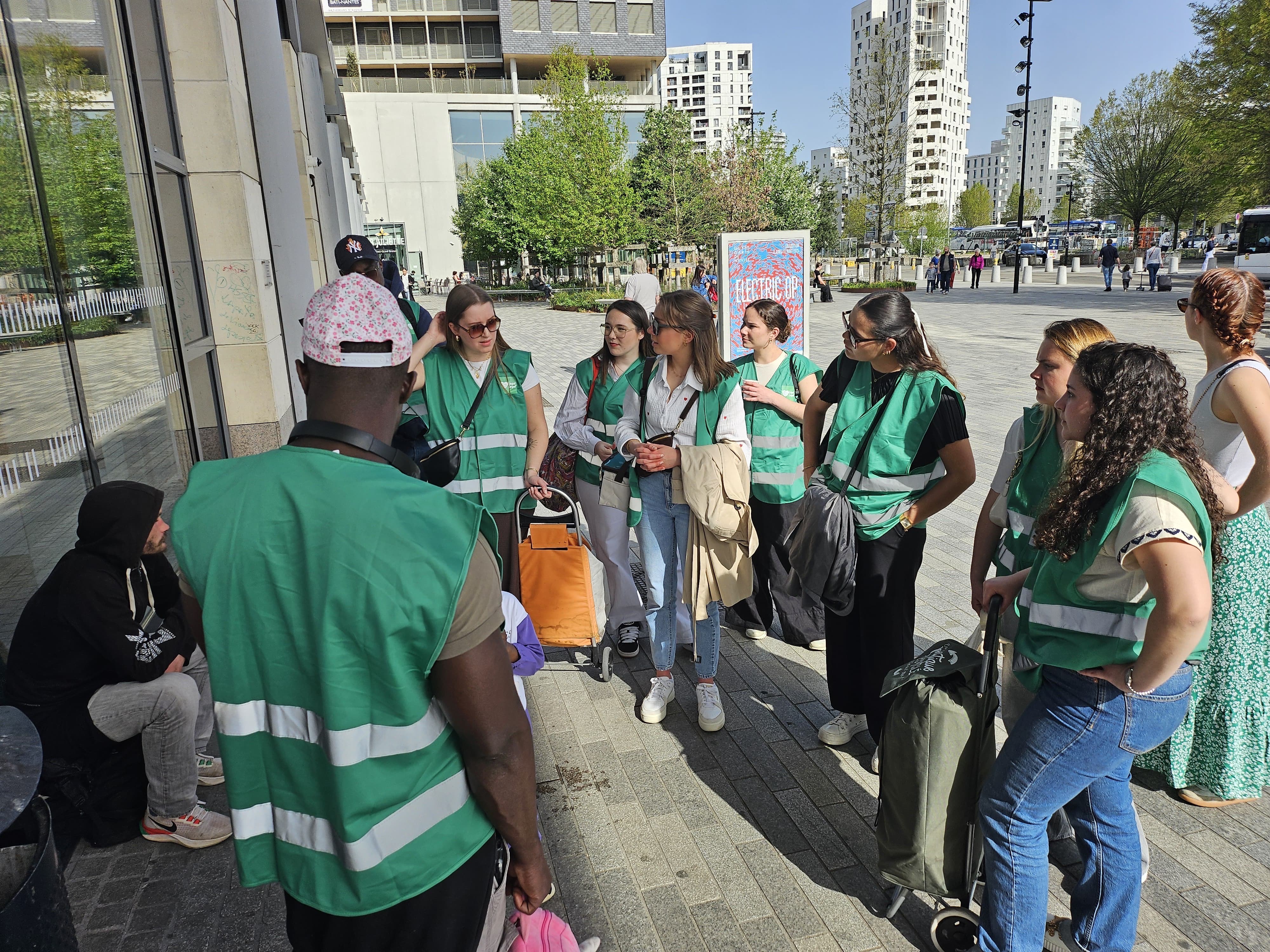 Distribution de repas chauds, vêtements et produits d'hygiène aux personnes sans-abri dans les rues de Nantes.